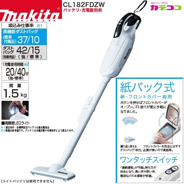 マキタ Makita Cl182fdzw 充電式クリーナ コードレス掃除機 18v バッテリー 充電器 別売 Ledライト スイッチ 紙パック式 本体のみ 0088381613583 家電とギフトの専門店 カデココ 通販 Yahoo ショッピング