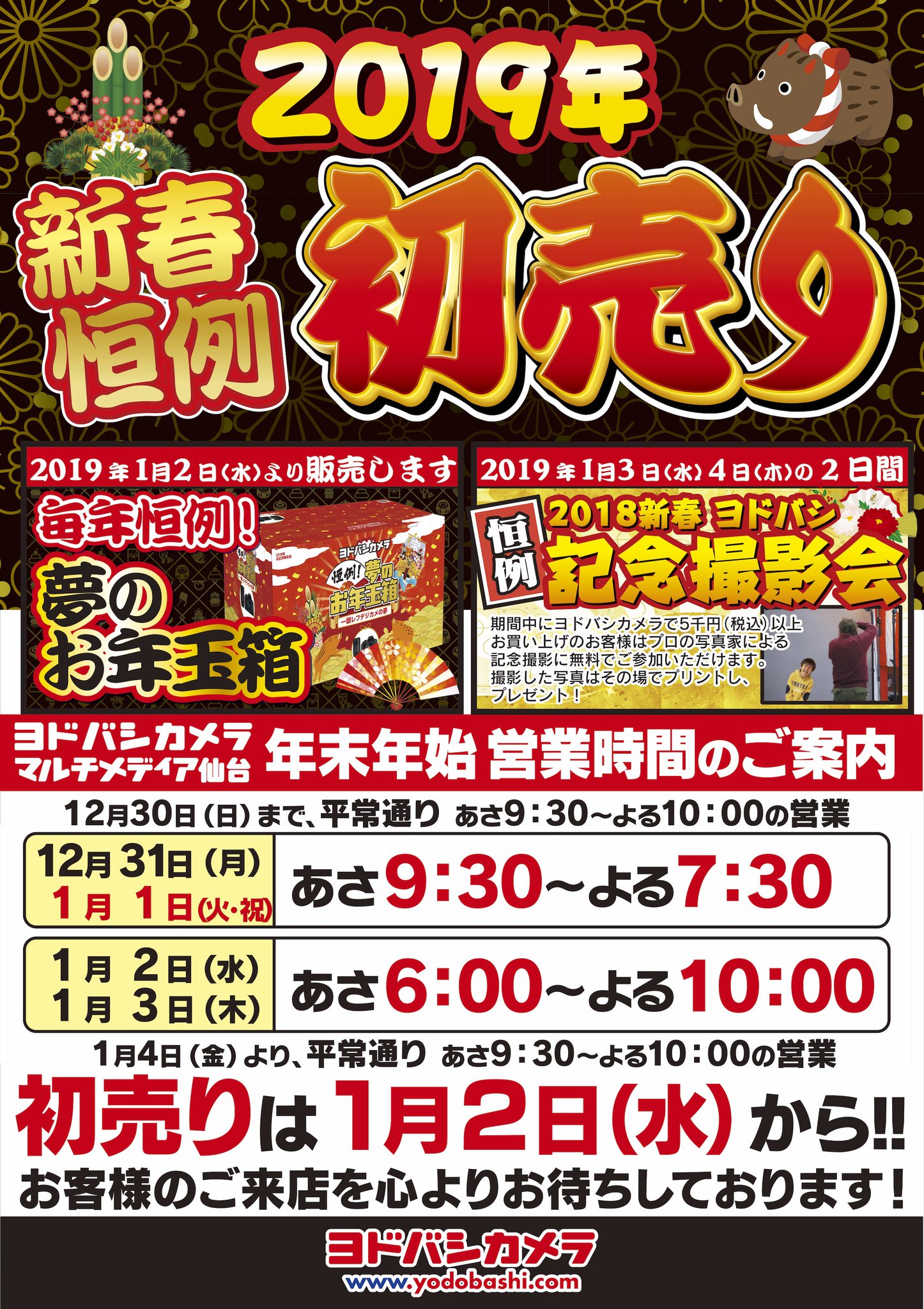 ヨドバシカメラ 仙台店 Twitter પર ヨドバシ仙台 の年末年始営業時間 宮城県仙台市が日本で一番アツくなる1月2日 初売り セールがスタートします 仙台店の初売りセールはお買い得商品だけではなく ご家族そろってお楽しみ頂けるさまざまなイベントをご
